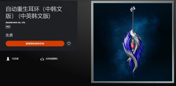 2021年12月22号,SE在PS港服商店更新了《最终幻想7重制版》道具“自动重生耳环”,继PC版之后也登陆PS5版了。官方描述它为:“翅膀造型的耳环,能让身心充满力量。陷入无法战斗状态时可自动恢复”。具体作用是每场战斗可以复活一次,相当于降低了游戏难度。重生耳环上线后,将作为免费道具DLC发放给所有玩家,到时候直接领取即可。