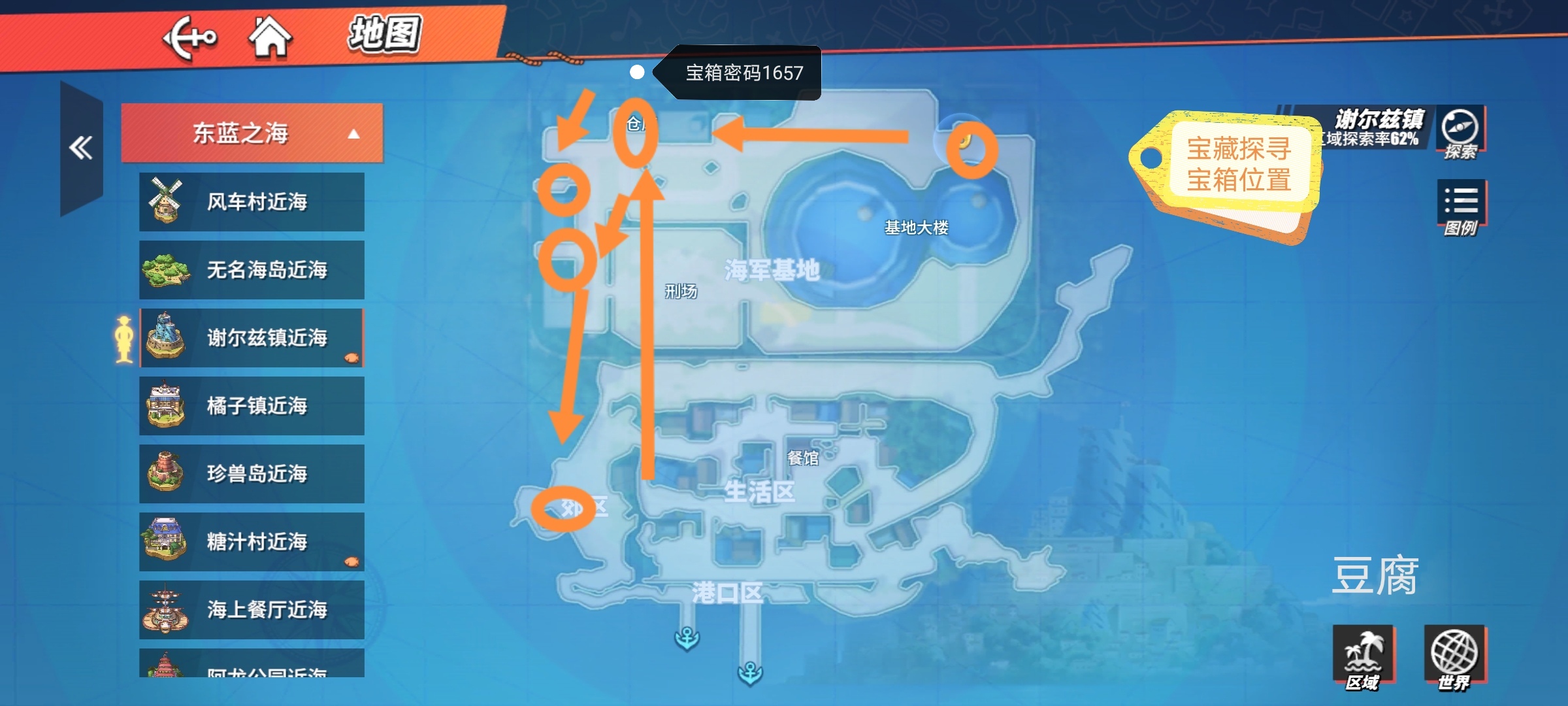 前四个宝箱:全部在海军基地旁边,大家在房屋旁边找找即可。