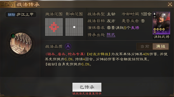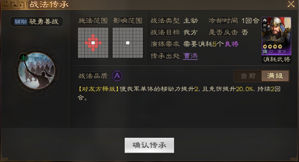 战法简介:非常优秀的减伤和移动力BUFF。