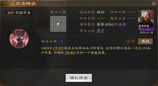 必拆说明:先减少对方防御并且打出高额爆发很多金色武将拆的战法也是比不上的,特别好用没有之一,不管是打架还是开荒都是非常不错的一个技能超越金色武将所拆的技能 很好用大佬也在用。
