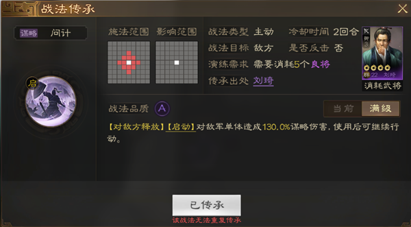 战法简介:特别好用的增加属性的战法 全属性40差不多白板变成满红。