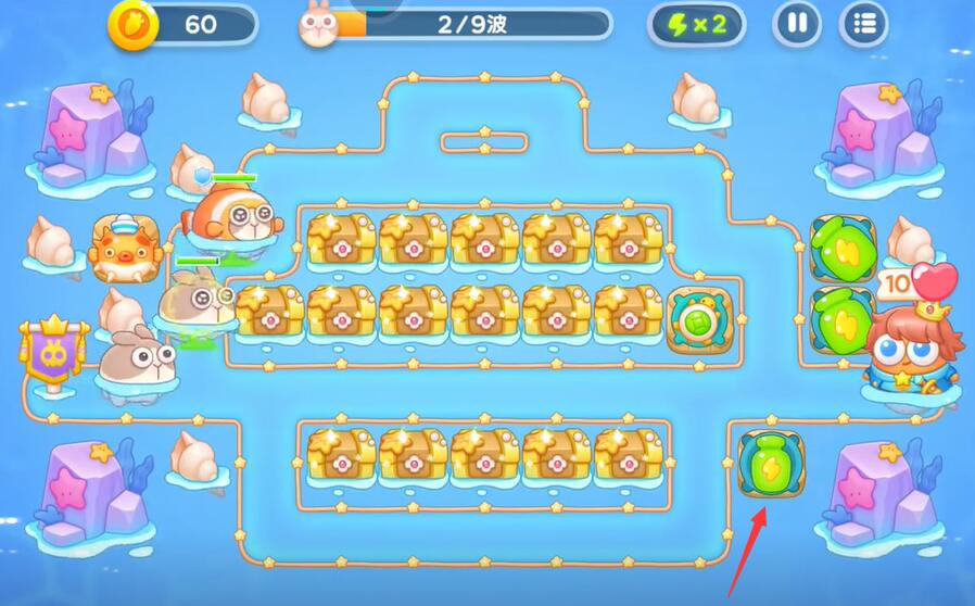 3、清理掉中间的宝箱,可以获得各种类型的防御塔,并且可以对其进行升级。