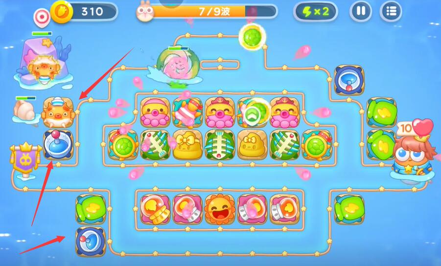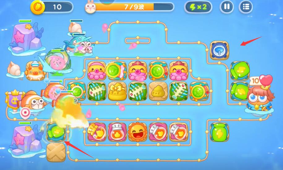 7、根据场上的情况建造不同类型的防御塔,清理掉所有的兔子即可完成本关的挑战。