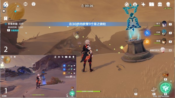 2、传送折胫谷东北方向锚点,往北走来到山坡顶,需要在30秒内收集9个草之微粒。
