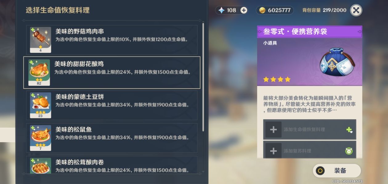 3、当队伍有人阵亡时会主动切换复苏食物,无则是恢复,比较耗食,他恢复顺序不会根据血量百分比最低角色或血量最少角色加而是根据队伍顺位,