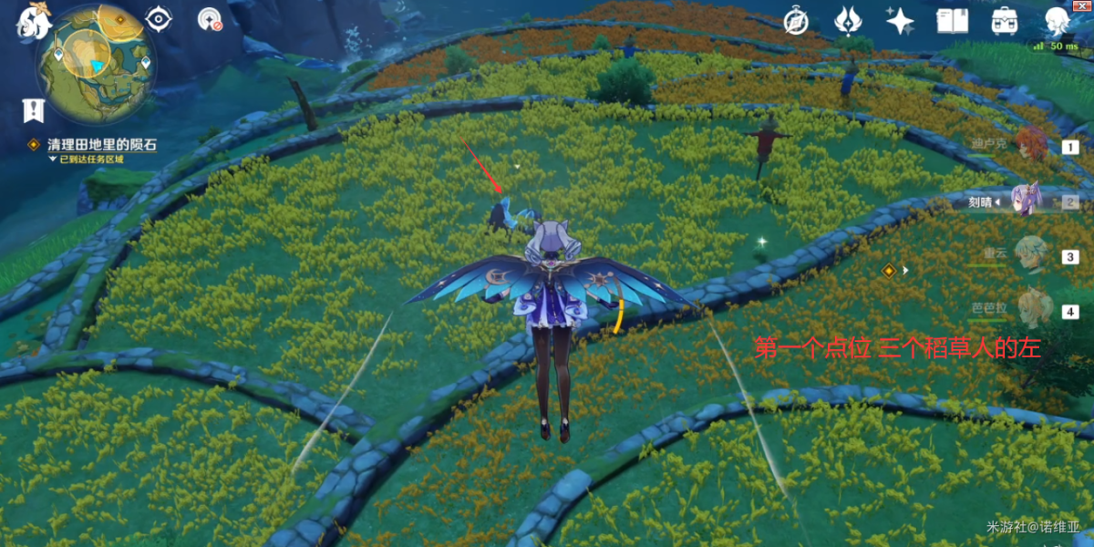 2、之后会接取任务清理田地里的陨石,要打两个点: