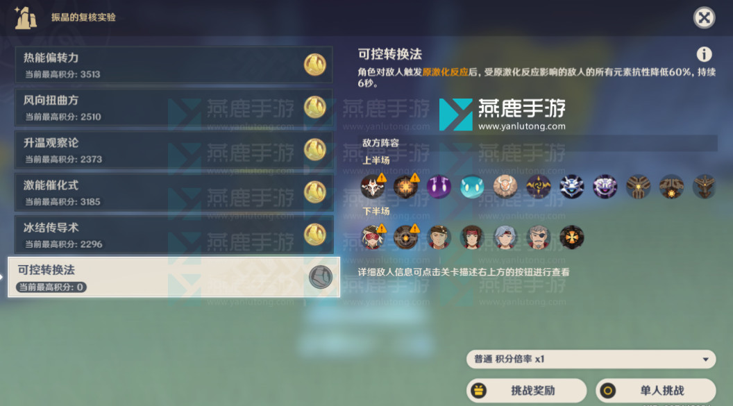 在3.5版本原神中。有新的版本活动已经开放了。[振晶的复核实验]这个活动能够去使用到更多的角色来进行闯关挑战。其中第六天叫做[可控转换法]。今天小编为各位玩家带来了原神振晶的复核实验第六天攻略,有需要这个攻略的玩家快来看看吧。
