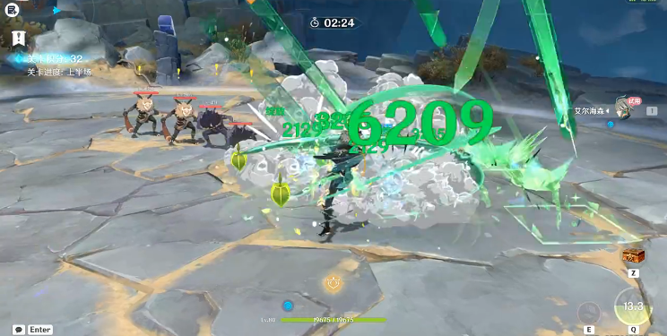 5、附魔消失后,长E下落攻击即可。继续平A。如此循环。