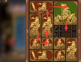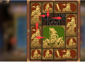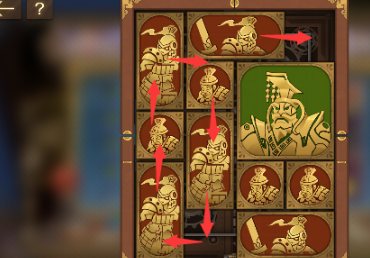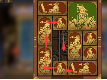 5、将军向下移动,左上角的长方形向右移动,中间的图形逆时针旋转一拳。