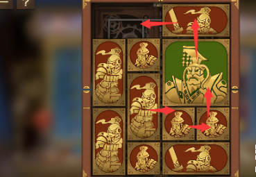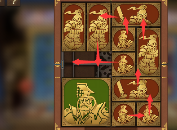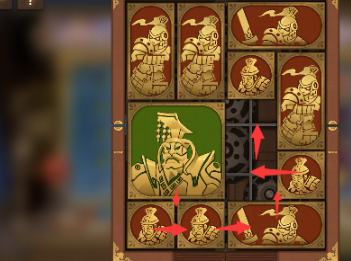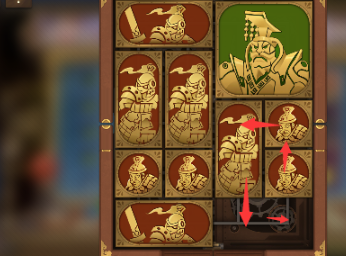 2、右上角的长方形向左移动,将军向上移动,其下方的正方形竖直拍列,中间的长方形向右移动。
