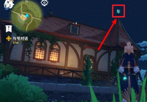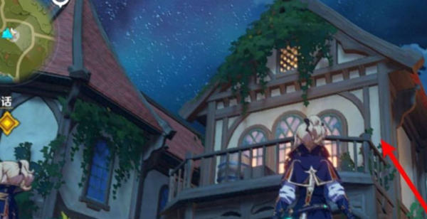 2、我们站在酒庄外面,可以看到屋顶上有一个风神瞳。