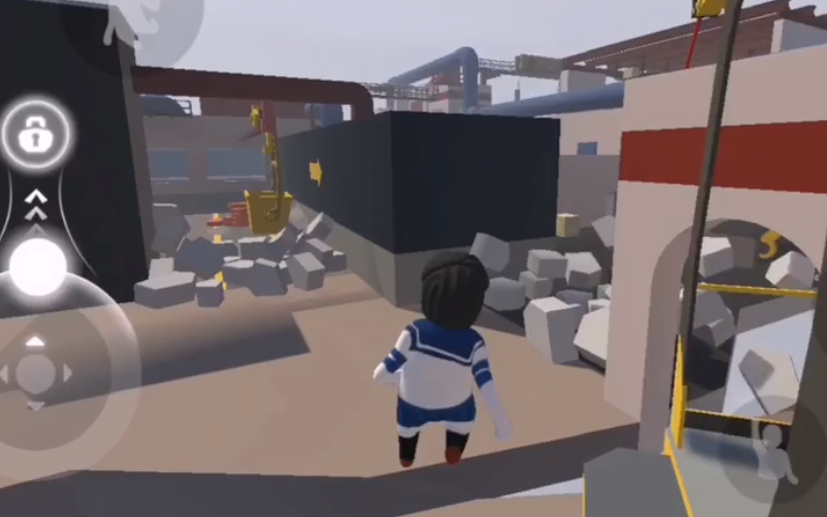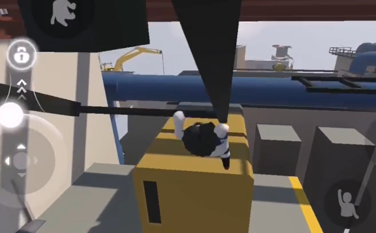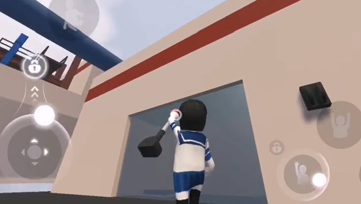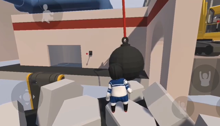 6、将操作杆向右拉,来回利用惯性,让大铁球砸碎墙壁。