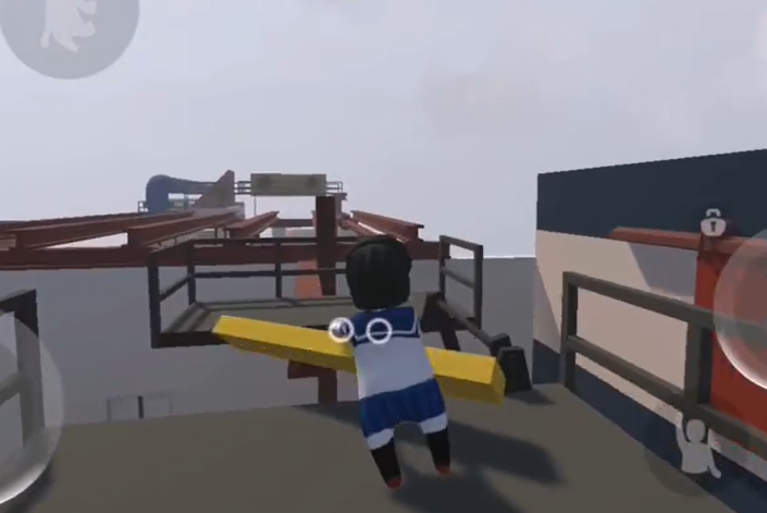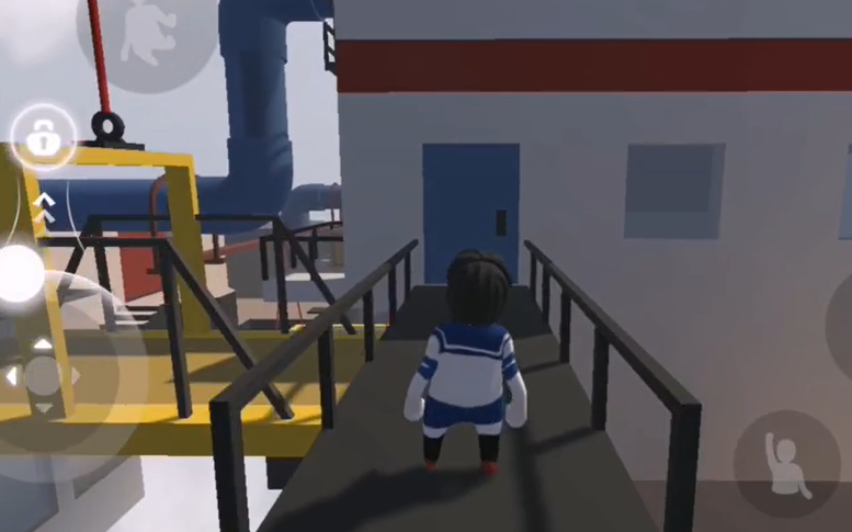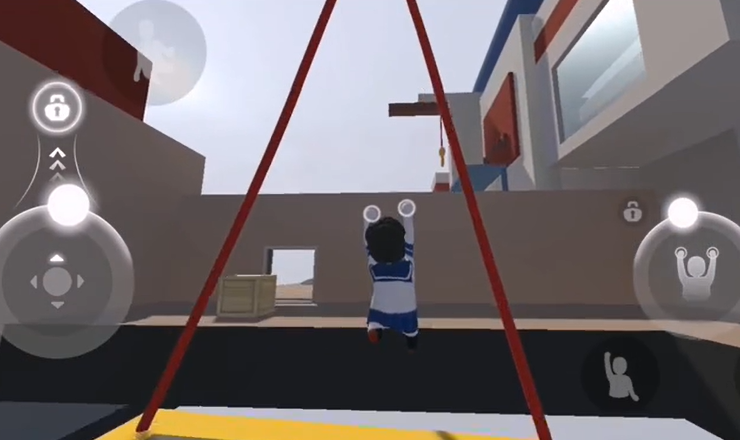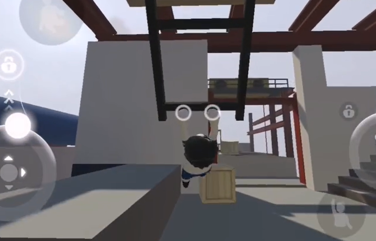 17、通过打开的门,拉动摇杆,让对面的黄色平台晃动起来,爬到黄色平台上面。