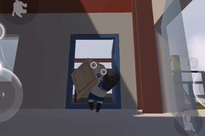 2、将窗户前面的摇杆拉到最右边,吊着的大方块就可以将墙砸碎。