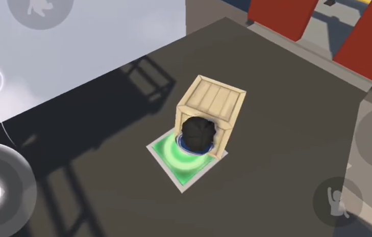23、将小木箱放在承重机关上,大门打开,通过大门。
