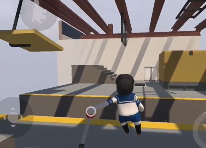 18、抓住上面的黑色杆子,荡过去。