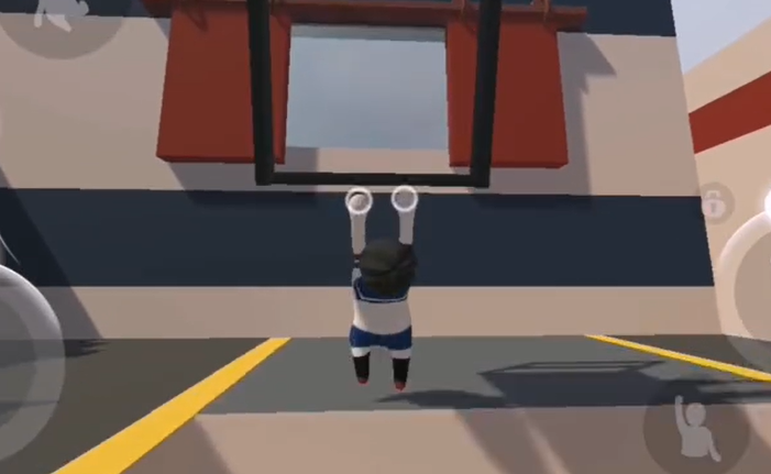 4、跳起来抱住大铁球荡到对面。
