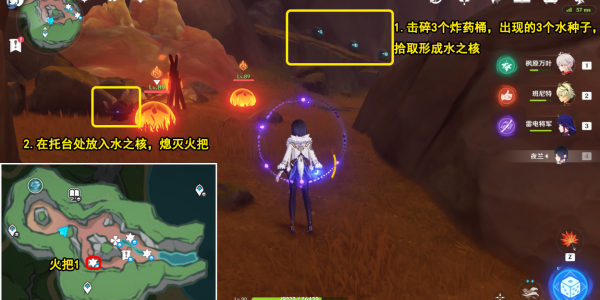 3、之后需要拾取3个水种子形成水之核并将其放置在火把旁的托台上,随后将火把熄灭即可完成。