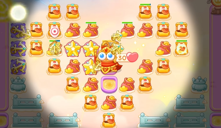 2、建立一个泡泡塔用来减速,建立一个星星,把下面灯打亮,之后依次打钱袋。