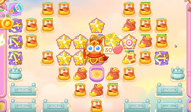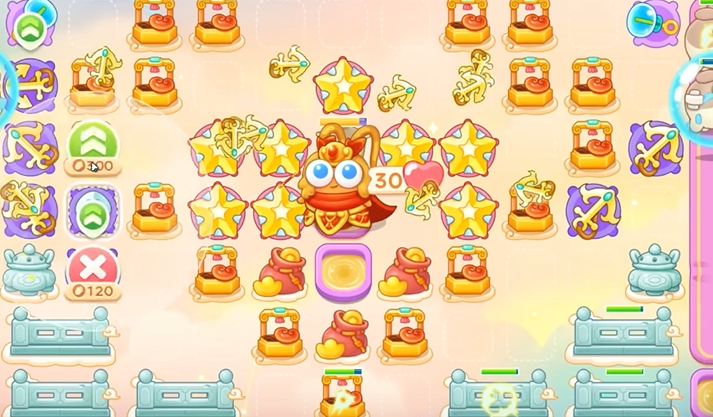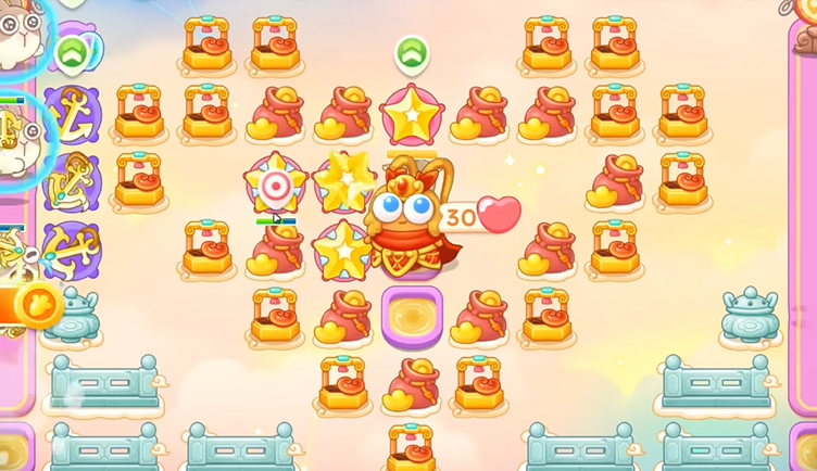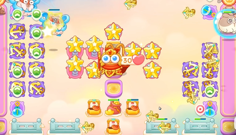 4、左右两边都买船锚和泡泡塔用来防守,没有粉兔的时候可以打下篮子,有粉兔的时候,把下面钱袋打掉,记得粉兔出现,锁头,不然很容易被啃。