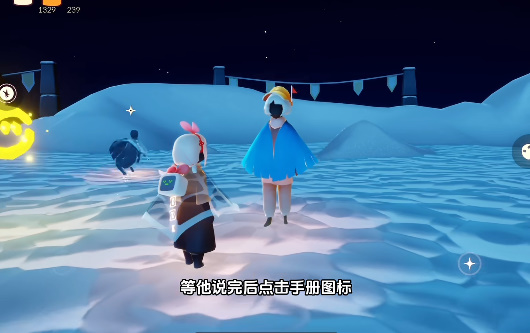 2、接着玩家需与他对话,对话完成之后需点击手册;
