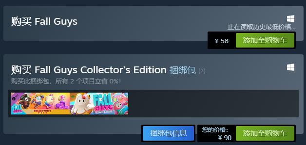 糖豆人典藏版(普通版+捆绑包)是90元。