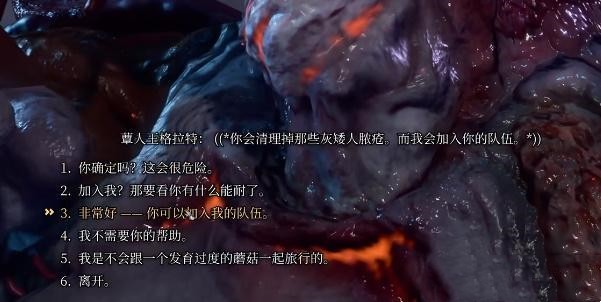 3、接着玩家在去往任务目的地的路途中会遇到蕈人王格拉特,之后会触发剧情使他加入队伍;