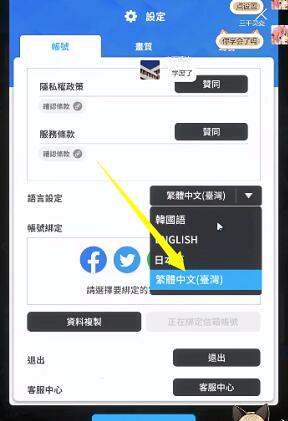 3、之后我们在功能界面找到语言设定选项,点击选项框,找到繁体中文点击保存设定即可。