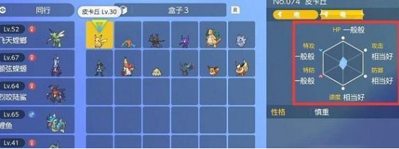 3、点击想要查看宝可梦,右边就是查看的宝可梦个体值。