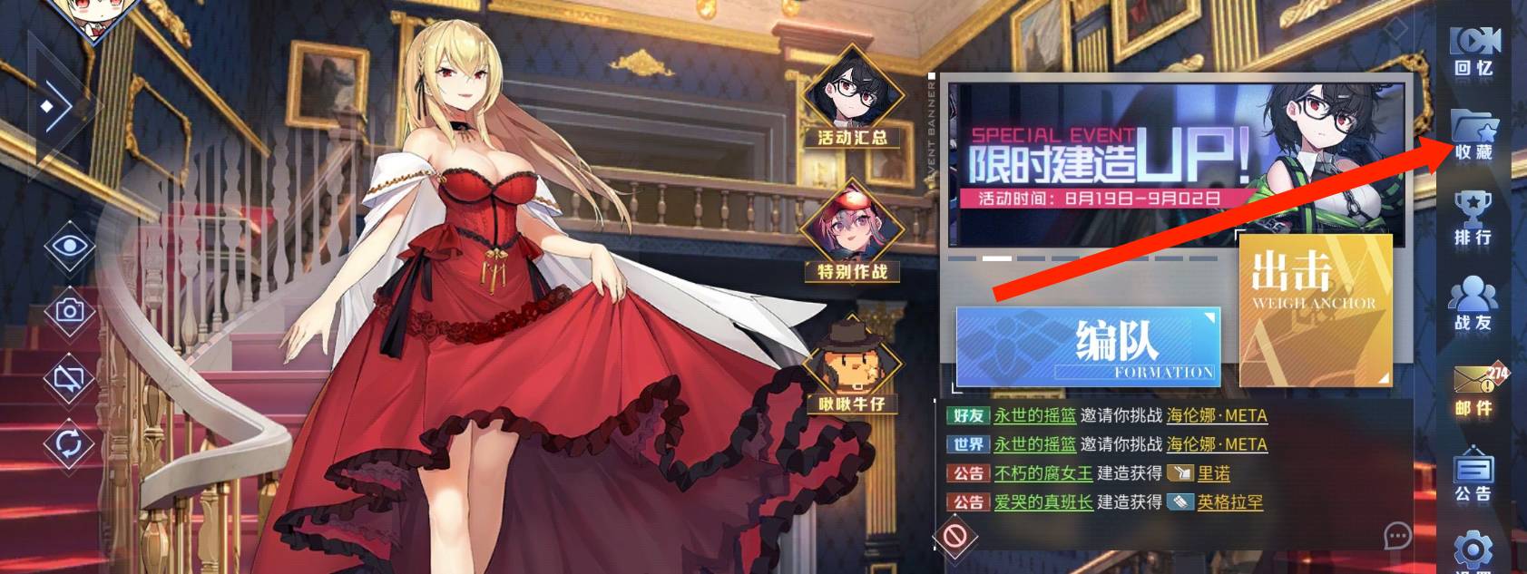 1、首先我们进入游戏,点击主界面右上角的收藏图标。