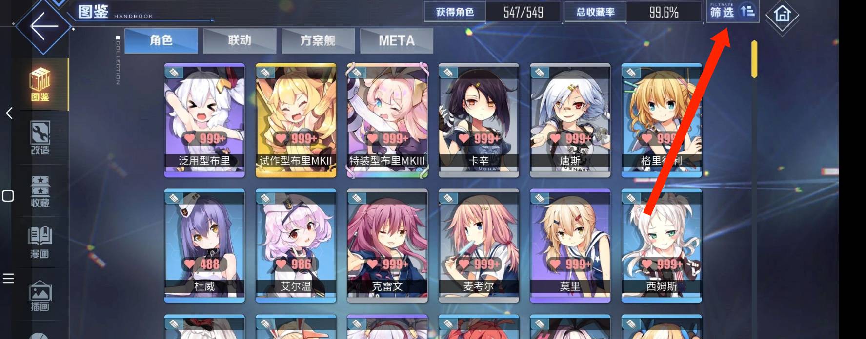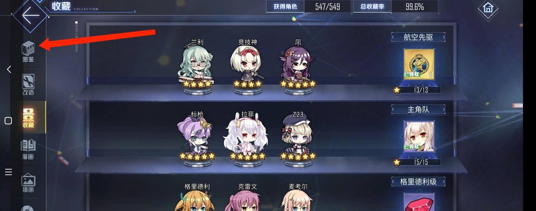 2、进入收藏页面后,点击左边的图鉴按钮。