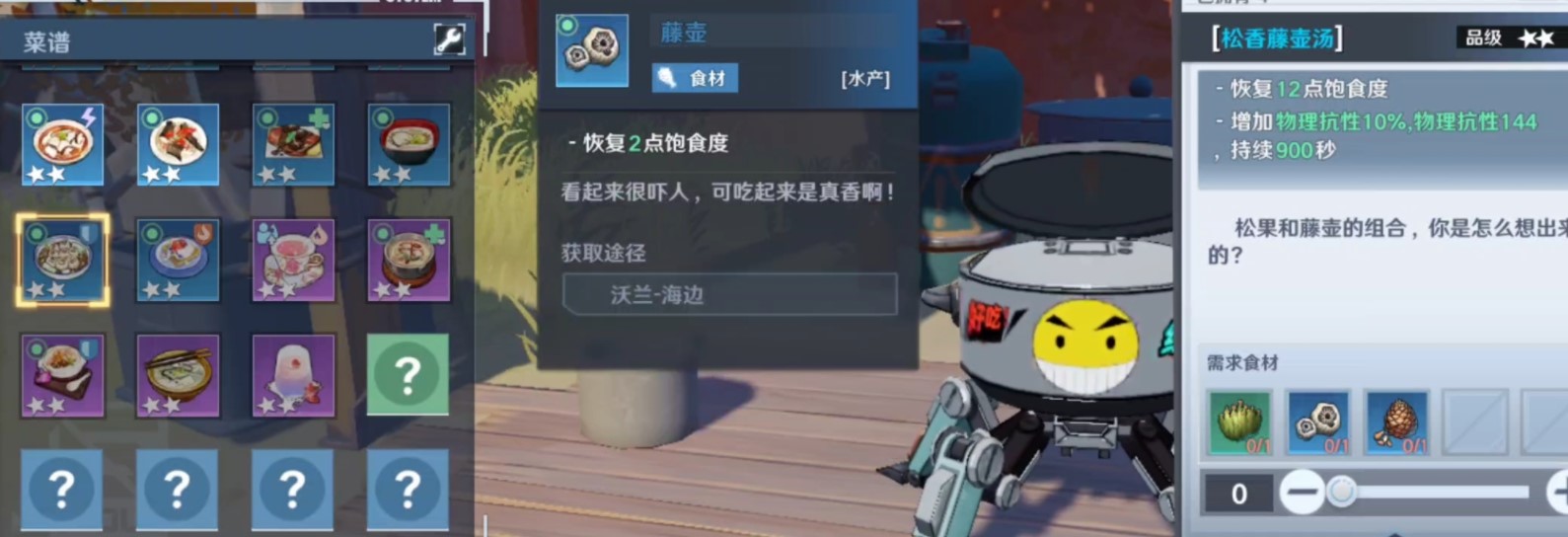 松香藤壶汤是幻塔游戏中一道比较简单的料理,玩家收集玩材料就可以制作了,很多小伙伴不知道怎么获取材料,不知道怎么制作松香藤壶汤,下面小编就给大家带来了幻塔松香藤壶汤制作方法,希望有所帮助。