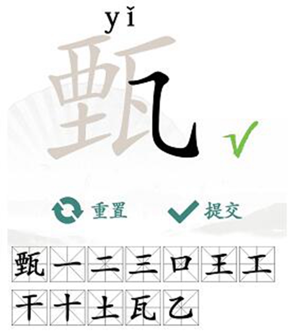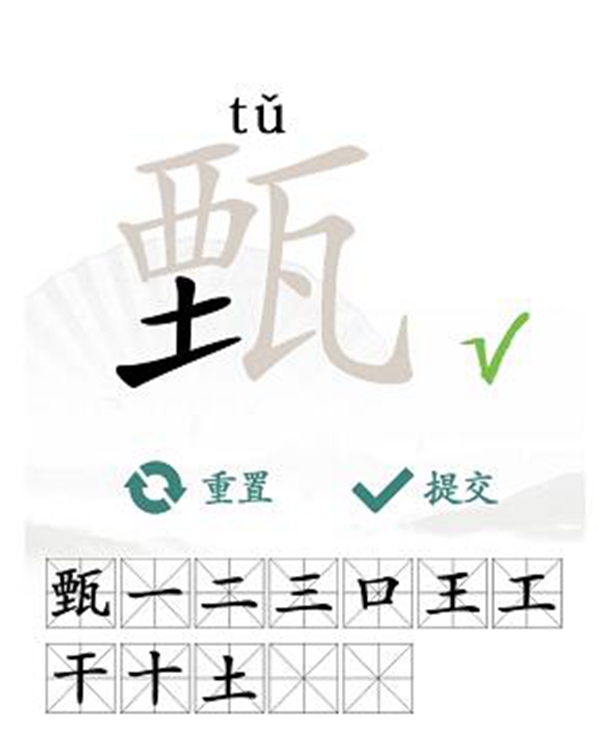 1、关卡答案:【甄、一、二、三、口、王、工、干、十、土、瓦、乙】。