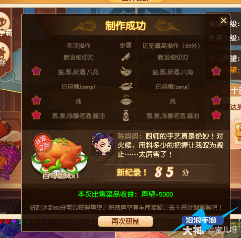 6、时间:盐葱的进度条在金钱的“钱”字后一格,炖的进度条在“汆”字的后一格,酱油盐葱的进度条在金钱的“金”字正上方。