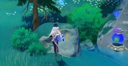 1、首先到达优兰尼娅湖的左下方。拿起水种子并跳到水中,让水种子凝成水之核。