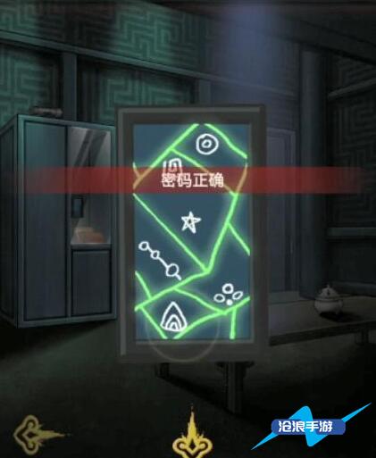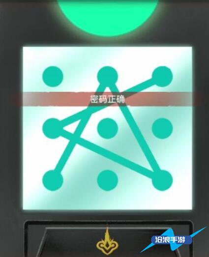 3、按照下图的顺序打开门的密码获得【游戏机】和【蓝色条】。