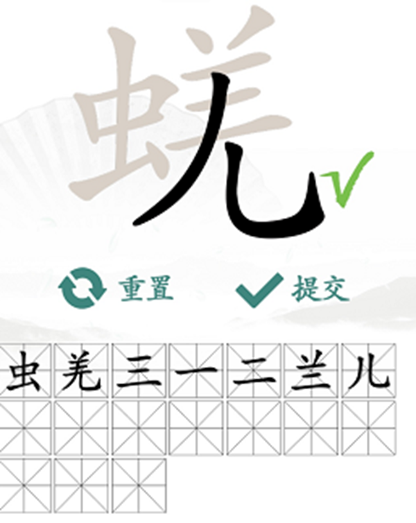 2、我们先把“蜣”左右拆看找一些简单的汉字:【虫、羌、一、二、三、兰、儿】。