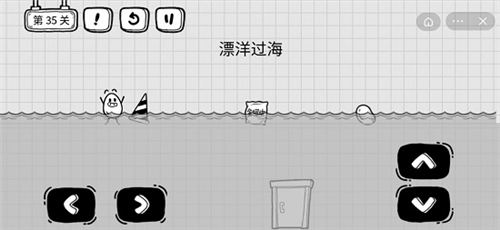 3、水面下是有鲨鱼出没的,我们只需要操控茶叶蛋在最右侧潜到水中,然后向左方向移动。