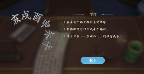 5、最后完成以上内容即可获得关键线索,到达主位桌子上自动触发获得字环,到达大门吧所获得的字环放到里面即可完成任务。