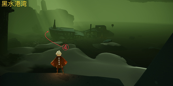 4、第四个和第五个先祖在前方的巨兽荒原之中,第四个先祖在右侧的图里,从一个管道进入黑水港湾,然后在沉船后面就能够看到。第四个先祖跟随先祖回忆的时候有一个双人门,可以不打开直接绕过去。