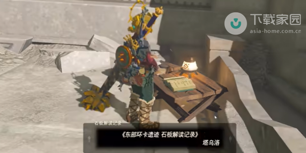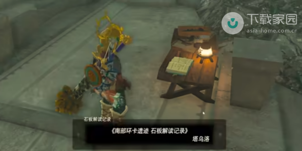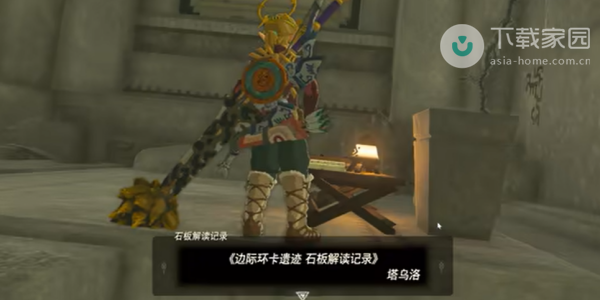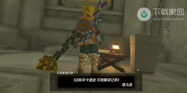 3、随后去往下图位置找寻第二个石板记录,到达之后向后方走即可看见一个桌子,上面既是石板解读记录;