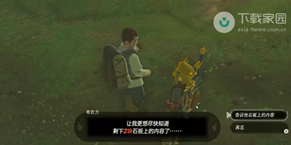 1、首先先来到下图位置,到达之后找到布古力并与之对话,从中了解到他想看刻有左纳乌文字的石板;