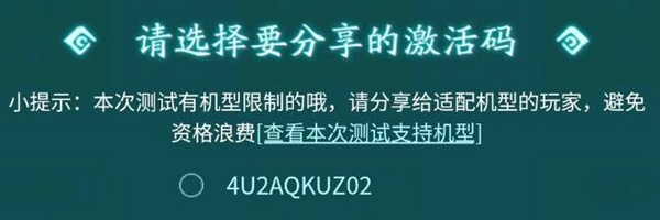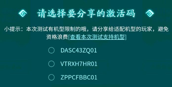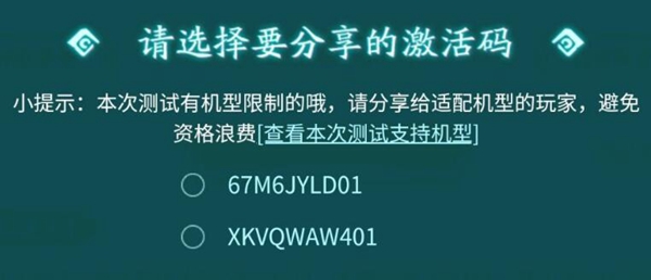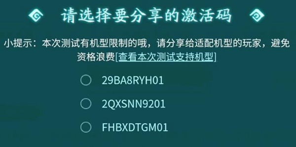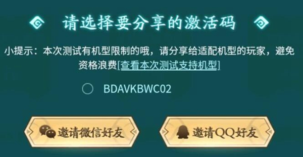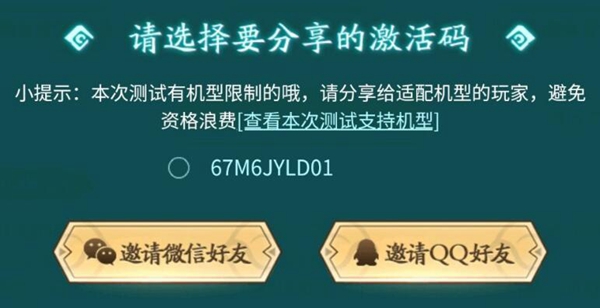 玩家对应自己的机型,以免领取了激活码而不能够用。
