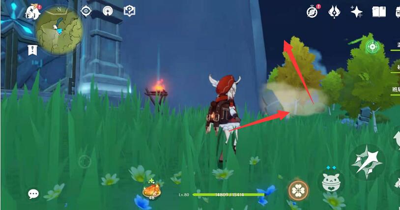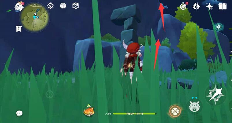 4、爬到上边看着小地图的光标,即可找到丘丘人;