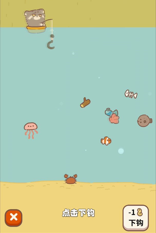 1、钓螃蟹首先要注意点开鱼塘,等到螃蟹出现,点击下钩。钓一次后马上点击左下角的红叉退出鱼塘,然后再次进入,螃蟹会再次出现。