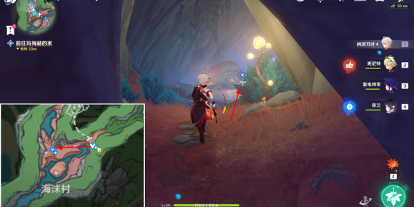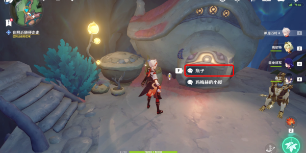 2、接着需按下图路线找到玛梅赫并对话,然后去往她的家并调查屋子旁的瓶子;