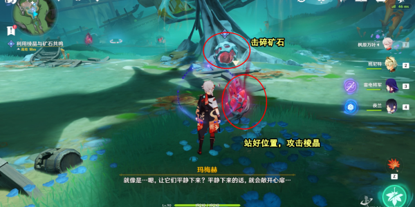 4、随后找到玛梅赫对话,之后去往指点地点并调整棱晶位置与矿石共鸣;
