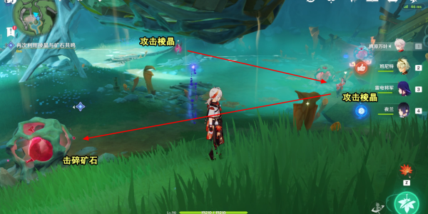 3、之后去往箭头所示方向,然后利用棱晶与矿石共鸣,需进行两次;