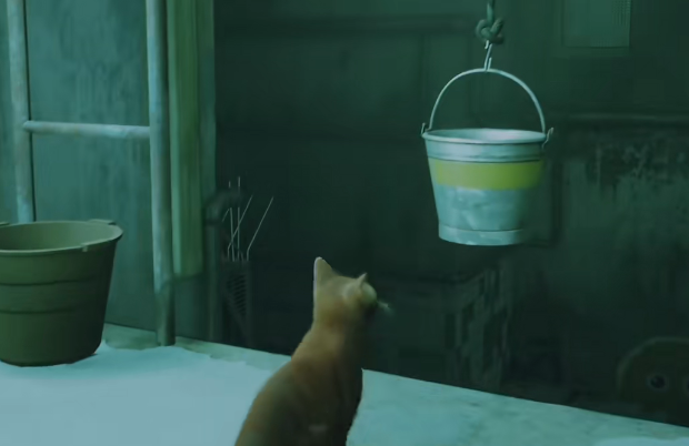 6、捡起地下的水桶,然后带到上方的风扇处将风扇破坏就能通过。