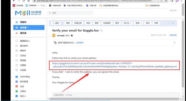 4、我们打开邮件,点击里面的链接来核实我们的信息。